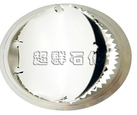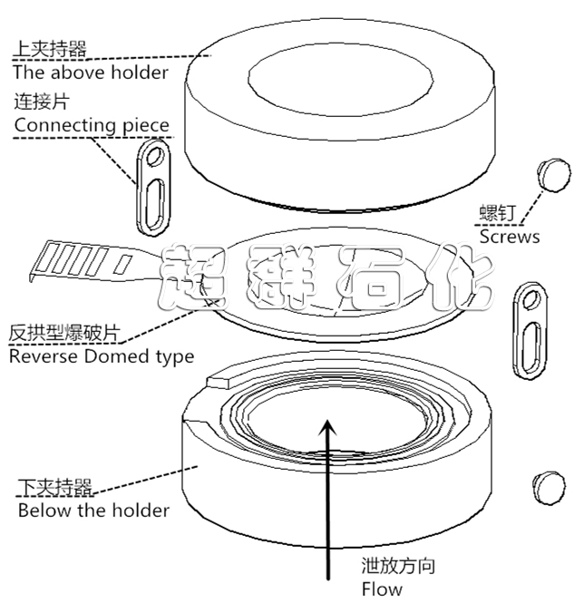 由反拱形金屬膜片和鋸齒壓桿構成的組合式爆破片,凹面接觸介質。爆破時,鋸齒壓桿失穩使組合膜片翻轉被鋸齒沿周邊處剪開,泄放壓力,從而起到保護作用。
