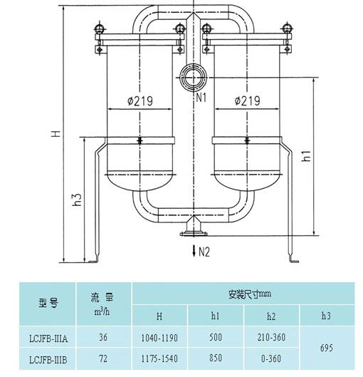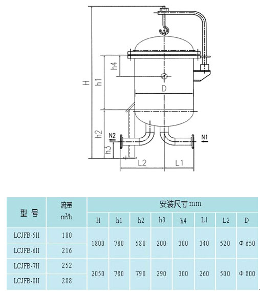 ②進出口N1、N2接管規格,LGJFB-5、6II為DN100、PN1.6,LGJFB-7、8II為DN150、PN1.6